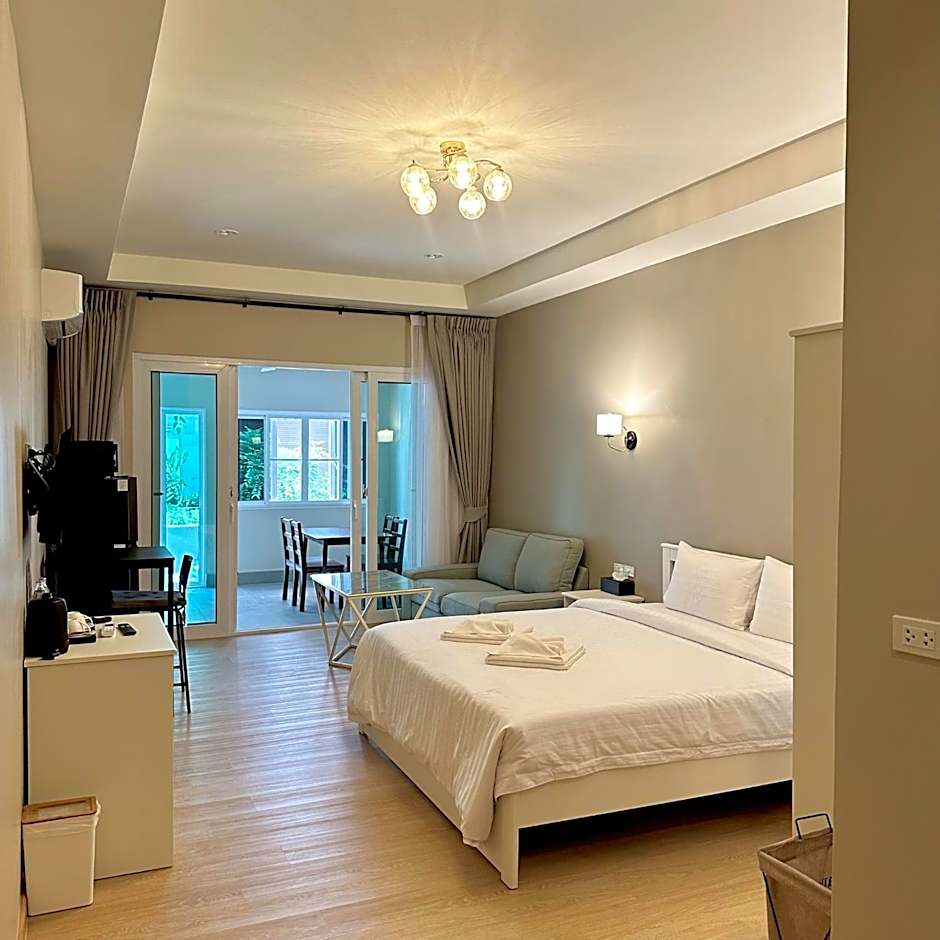Situated beachfront in Pattaya, this aparthotel comprises six rooms, each with a balcony. Inside, guests will find air conditioning, a terrace, and kitchen or kitchenette setups, along with free toiletries and a garden to enjoy a moment outdoors. Parking on site is free, and a 24-hour front desk is available to help with arrivals or late-night requests. A view is noted among the offerings, enhancing the seaside atmosphere.
